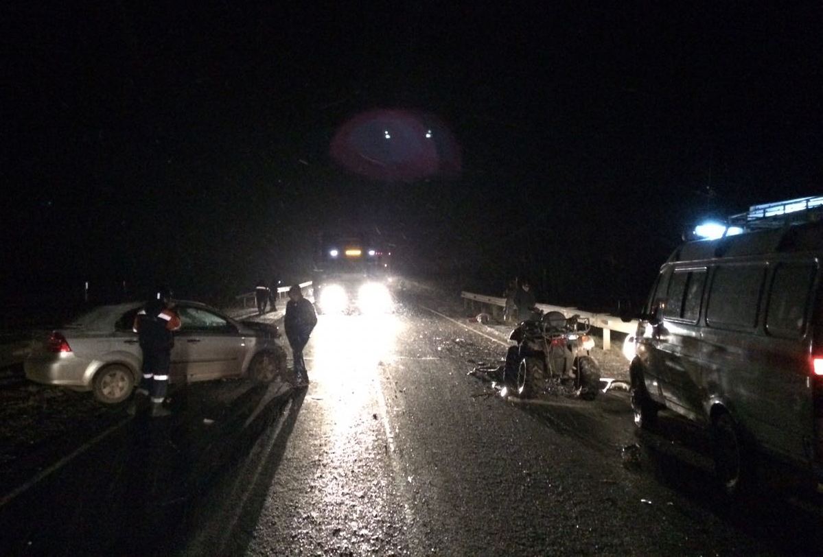 Вечером в Дюртюлинском районе на 1228 км автодороги Москва-Уфа 62-летний местный житель, управляя квадроциклом, предположительно, не уступил дорогу "Шевроле Авео", имевшему преимущество в движении и совершил столкновение с ним. В результате ДТП водитель квадроцикла скончался на месте происшествия.