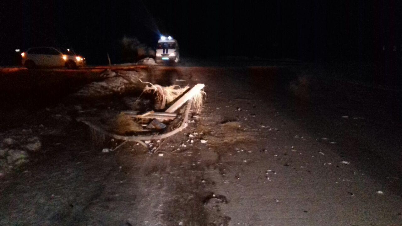Вечером в Учалинском районе на 10 км автодороги с.Имангулово-с.Базаргулово 51-летний местный житель, управляя гужевой повозкой (сани), при выезде на главную дорогу не уступил "Дэу Нексия", вследствие чего последовал наезд. В результате аварии водитель гужевой повозки госпитализирован, его 55-летний пассажир скончался на месте. Животное не пострадало.