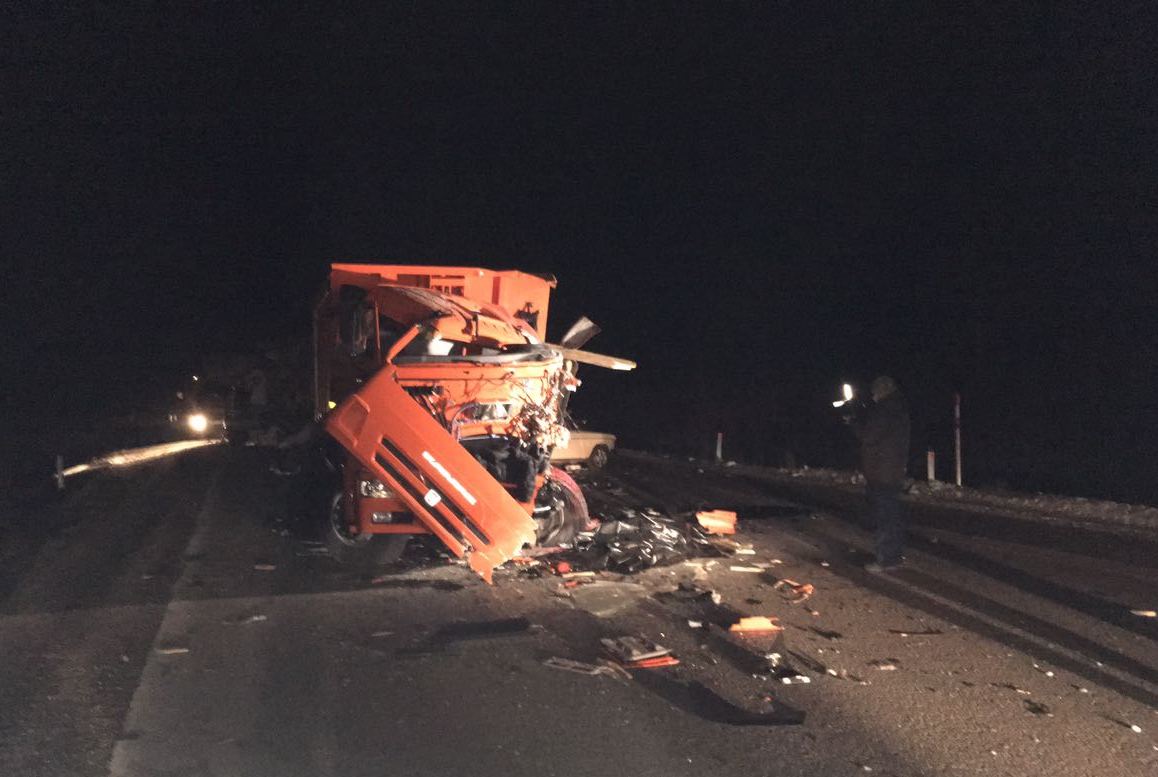 Поздно вечером ещё одна авария в Туймазинском районе унесла жизнь человека. На 1310 км автодороги Самара-Уфа-Челябинск 57-летний житель г.Нефтекамск, управляя грузовиком КамАЗ, по одной из версий, выехал на полосу встречного движения и совершил столкновение с другим грузовиком "Mercedes-Benz". Удар был настолько сильный, что части борта тягача повредили движущуюся позади ВАЗ-2106. В результате происшествия водитель КамАЗа скончался до приезда скорой помощи, второй 49-летний водитель грузовика из Нижегородской области получил травмы.