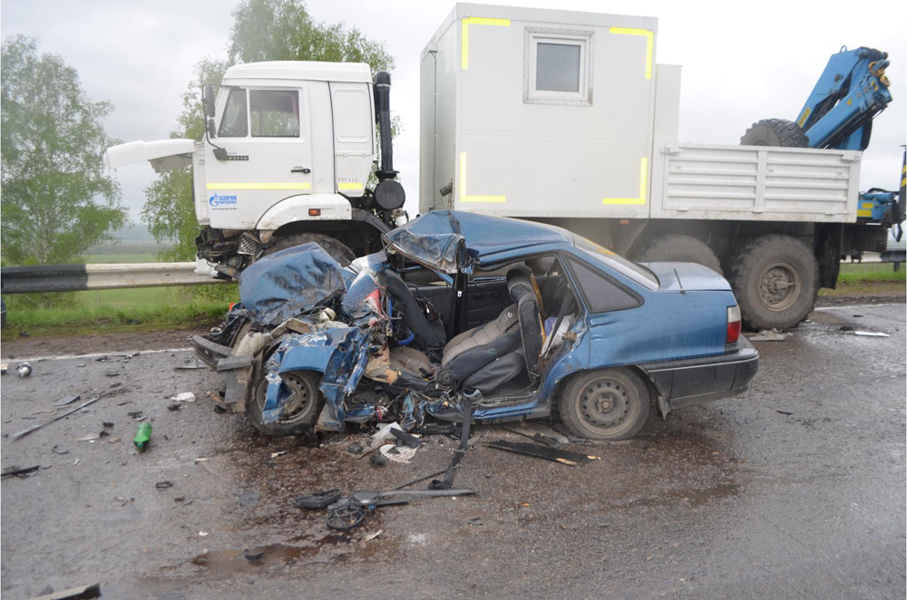 Сегодня днем в Салаватском районе на 53 км автодороги Кропачево-Месягутово-Ачит 18-летняя местная жительница, не имеющая водительских прав, управляя автомобилем "Дэу Нексия", на опасном участке дороги с правым поворотом, предположительно, не справилась с управлением и совершила столкновение со встречным "Камазом".