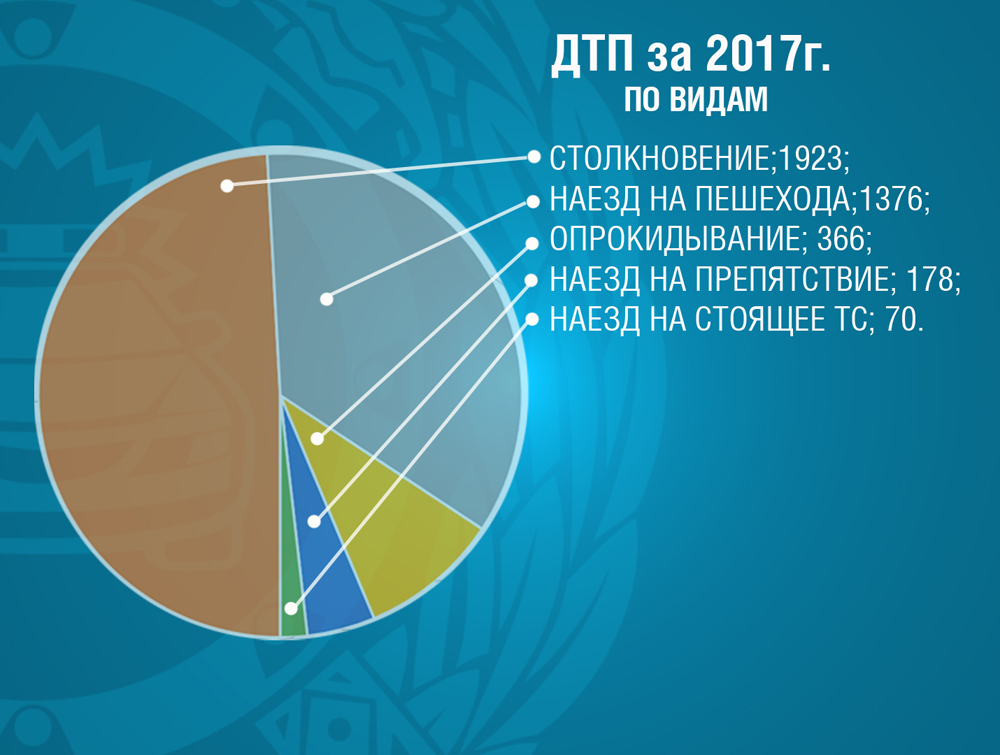 По итогам 2017 года достигнуто снижение количества ДТП на 3,9% (всего 4 тыс. 371), числа погибших - на 0,8% (всего 512) и раненых - на 5,0% (всего 5 тыс. 565).