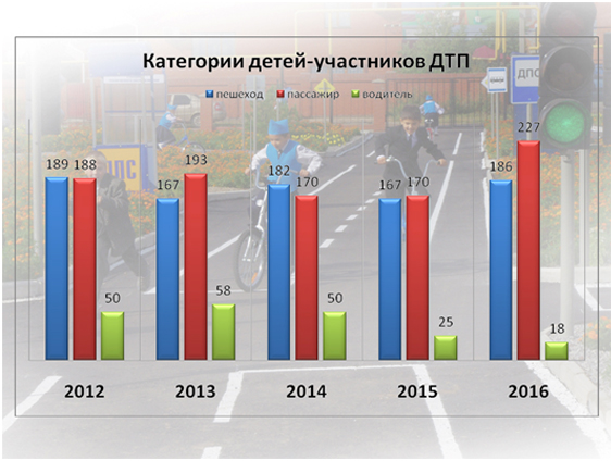 В 227 ДТП, что составляет почти половину от общего количества происшествий с участием несовершеннолетних, они являлись пассажирами. В них погибли 11 детей и 255 получили телесные повреждения. Только в 2 случаях с погибшими детьми, перевозка осуществлялась без детского удерживающего устройства.