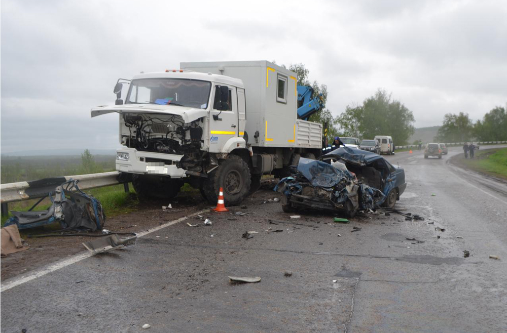 Сегодня днем в Салаватском районе на 53 км автодороги Кропачево-Месягутово-Ачит 18-летняя местная жительница, не имеющая водительских прав, управляя автомобилем "Дэу Нексия", на опасном участке дороги с правым поворотом, предположительно, не справилась с управлением и совершила столкновение со встречным "Камазом".