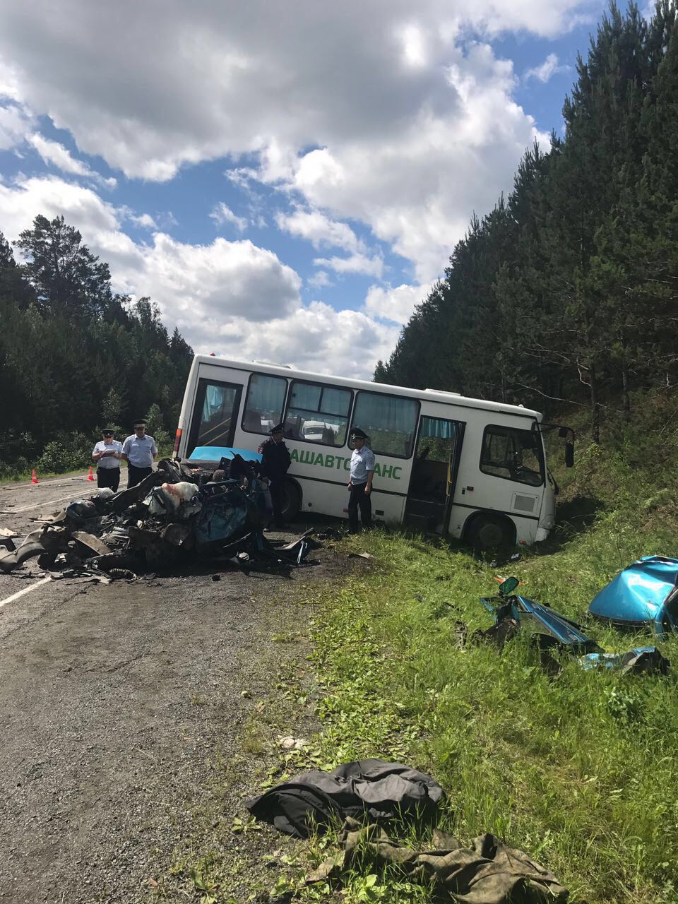 По предварительным данным, в девятом часу утра на 189 км автодороги Стерлитамак-Белорецк-Магнитогорск столкнулись маршрутный автобус и ВАЗ десятой модели. По имеющейся на данный момент информации, легковая автомашина, следовавшая со стороны Белорецка в сторону с. Авзян, выехала на полосу встречного движения и допустила столкновение с пассажирским автобусом марки ПАЗ. В автобусе находились трое пассажиров. Известно, что погибшие, мужчина и две женщины из легкового автомобиля. В настоящее время личности устанавливаются.